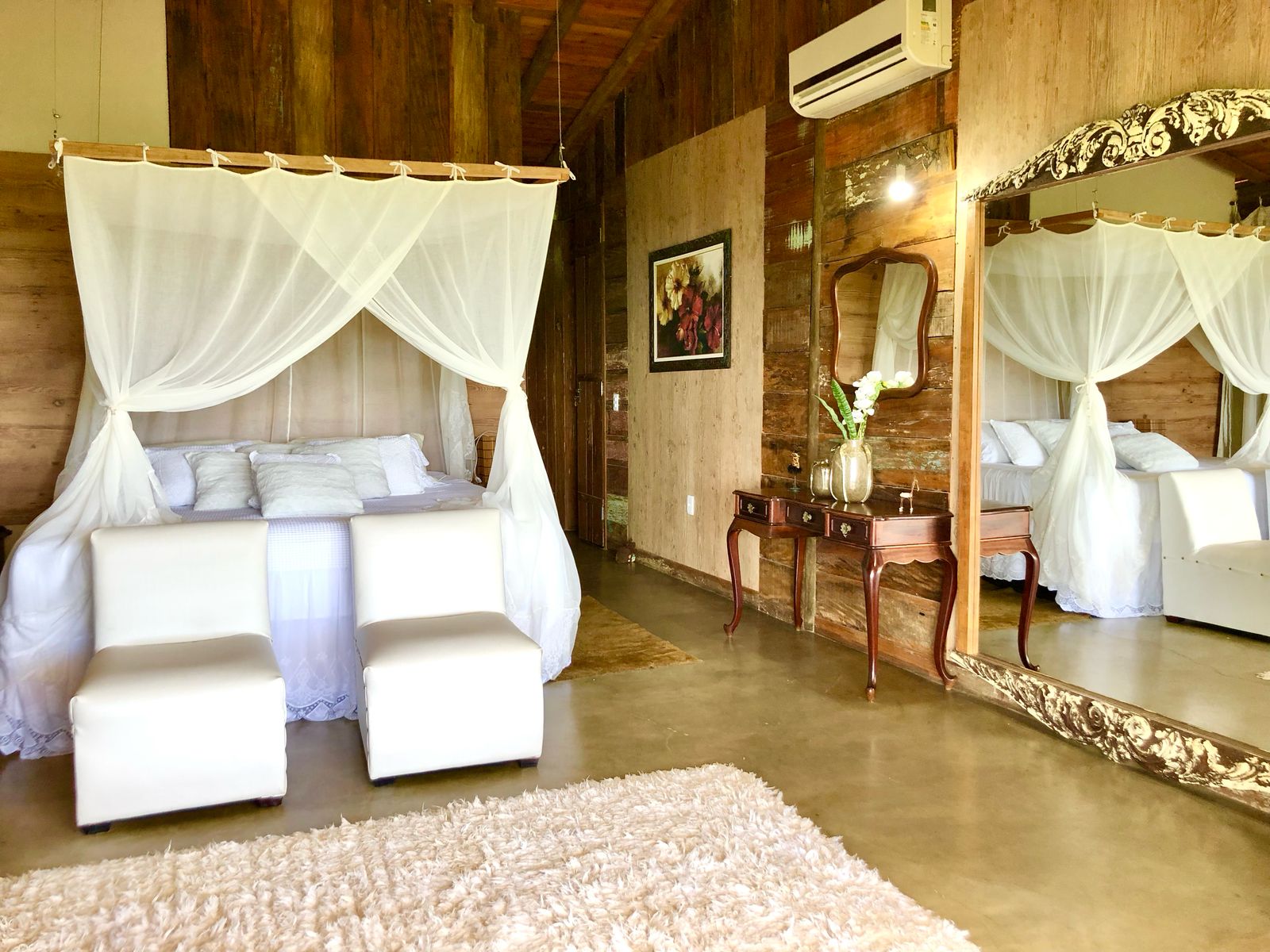 Este bangalô luxuoso é um refúgio integrado à natureza, perfeito para até 5 pessoas. Localizado tão próximo à praia que o som das ondas é uma constante, ele conta com: