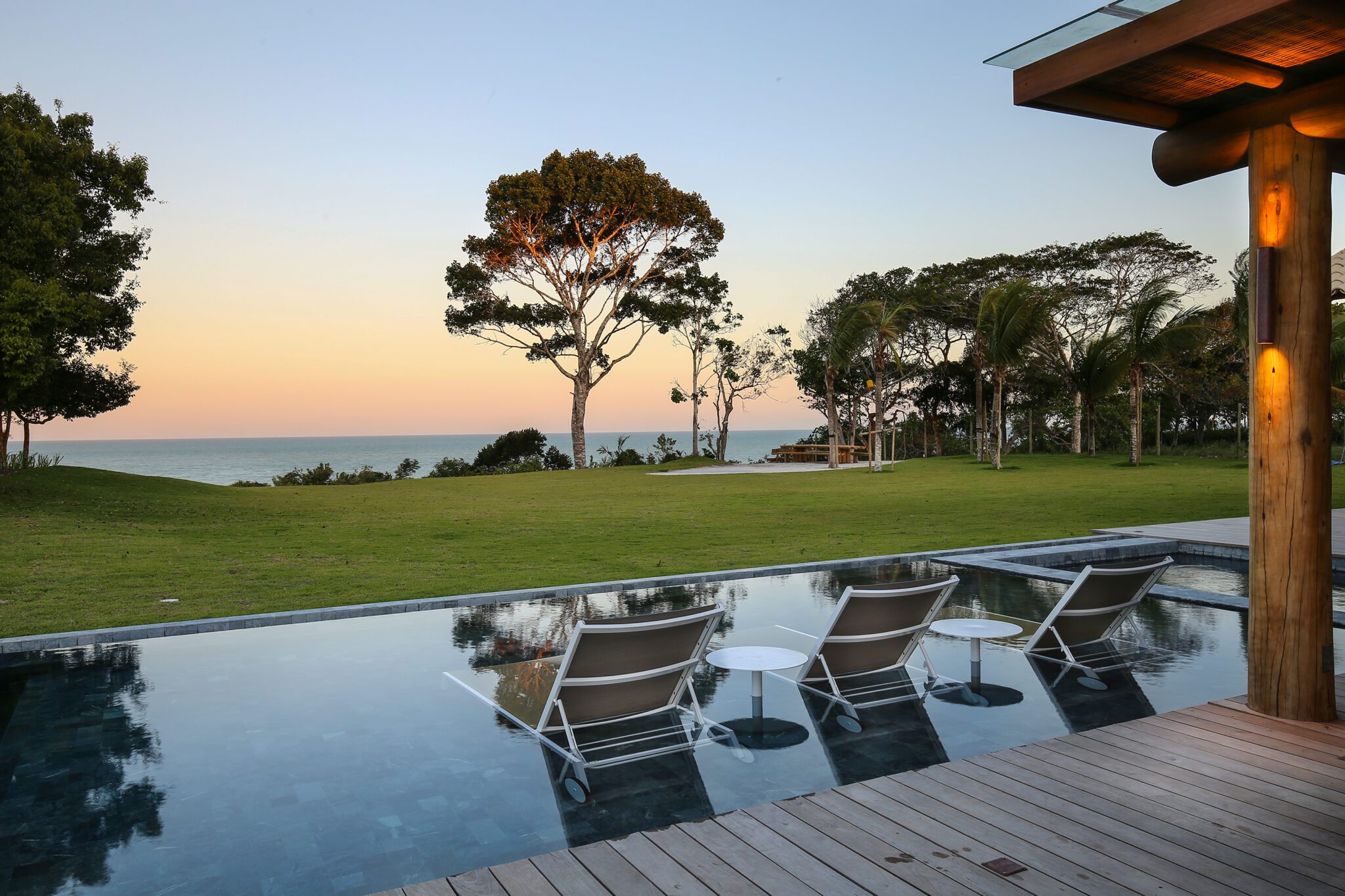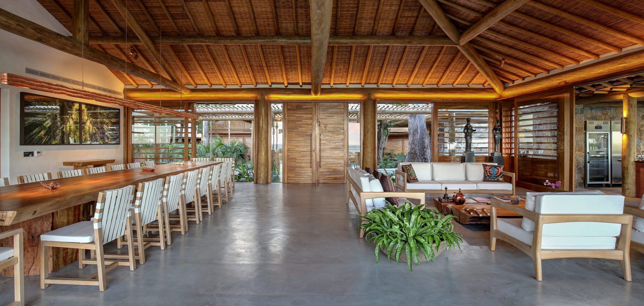 Localizada nos Altos de Trancoso, esta espetacular propriedade com vista para o mar oferece o equilíbrio perfeito entre conforto e sofisticação. Com um amplo terreno de 4.000 m² e área construída de 1.800 m², a casa é ideal para grupos de até 24 pessoas.