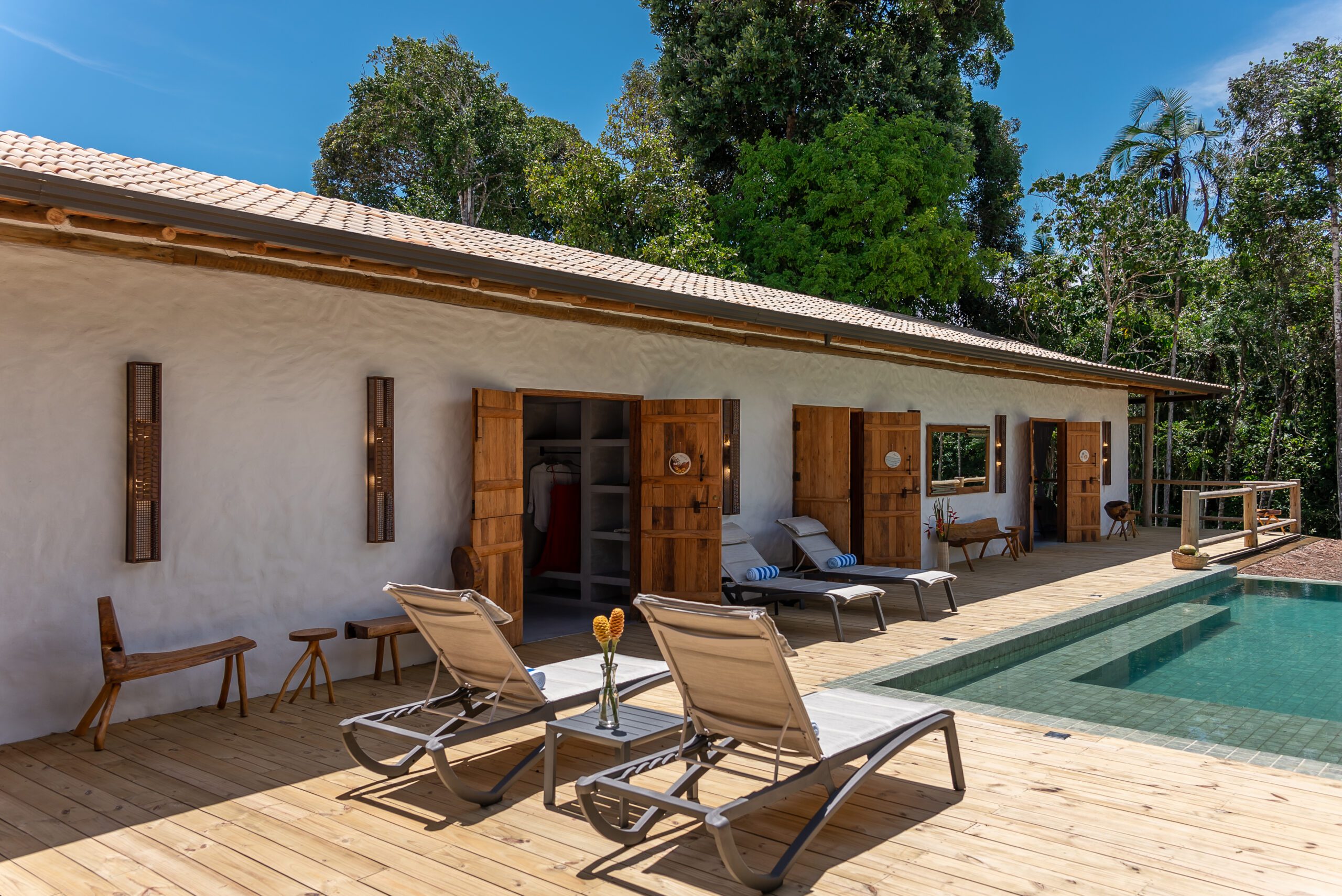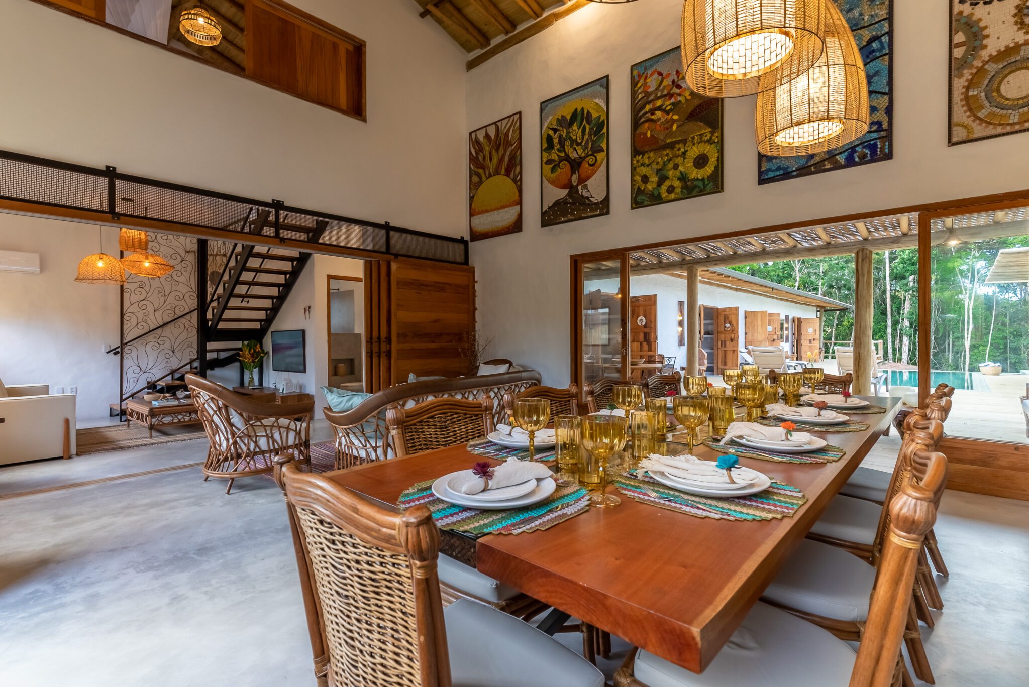 Localizada no Condomínio Coqueiral, esta casa oferece uma experiência única em Trancoso, a apenas 2,5 km da Praia dos Nativos e 2 km do famoso Quadrado. Com vista deslumbrante para a mata nativa e estrutura completa, a casa acomoda de 10 a 14 pessoas com total conforto.