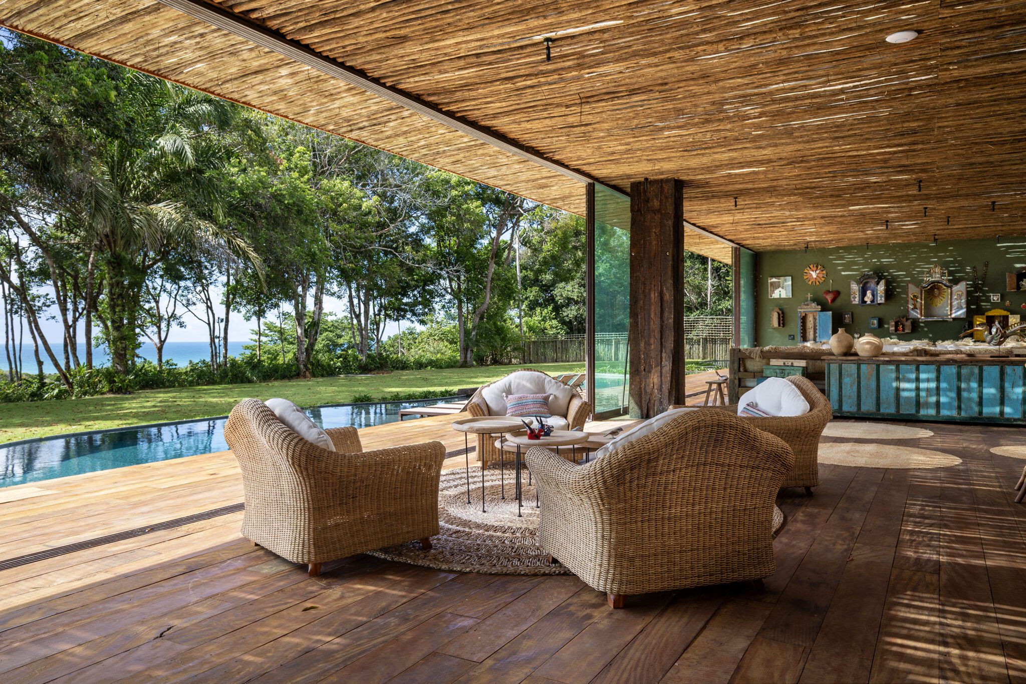 Uma propriedade de altíssimo padrão, cercada pela natureza e com vista para o mar, a poucos minutos do centro de Trancoso. Composta por quatro blocos distintos e infraestrutura completa de lazer, conforto e serviços, essa casa oferece uma experiência sofisticada e acolhedora para grupos grandes.