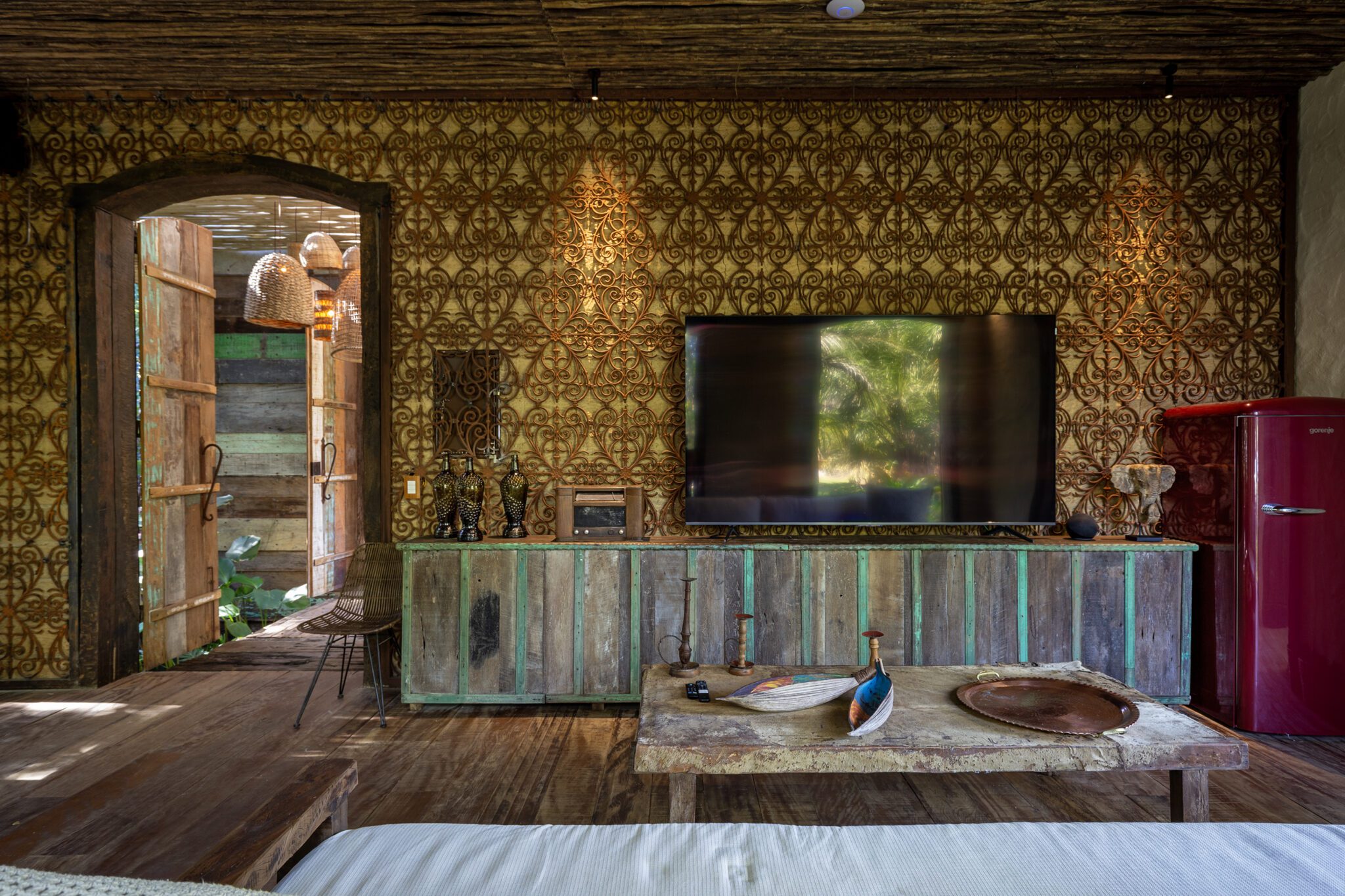 - Sala de TV no bloco de hóspedes com cozinha de apoio e varanda