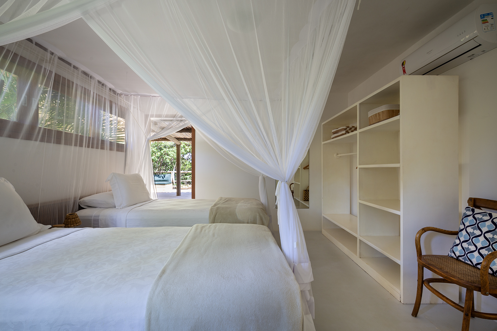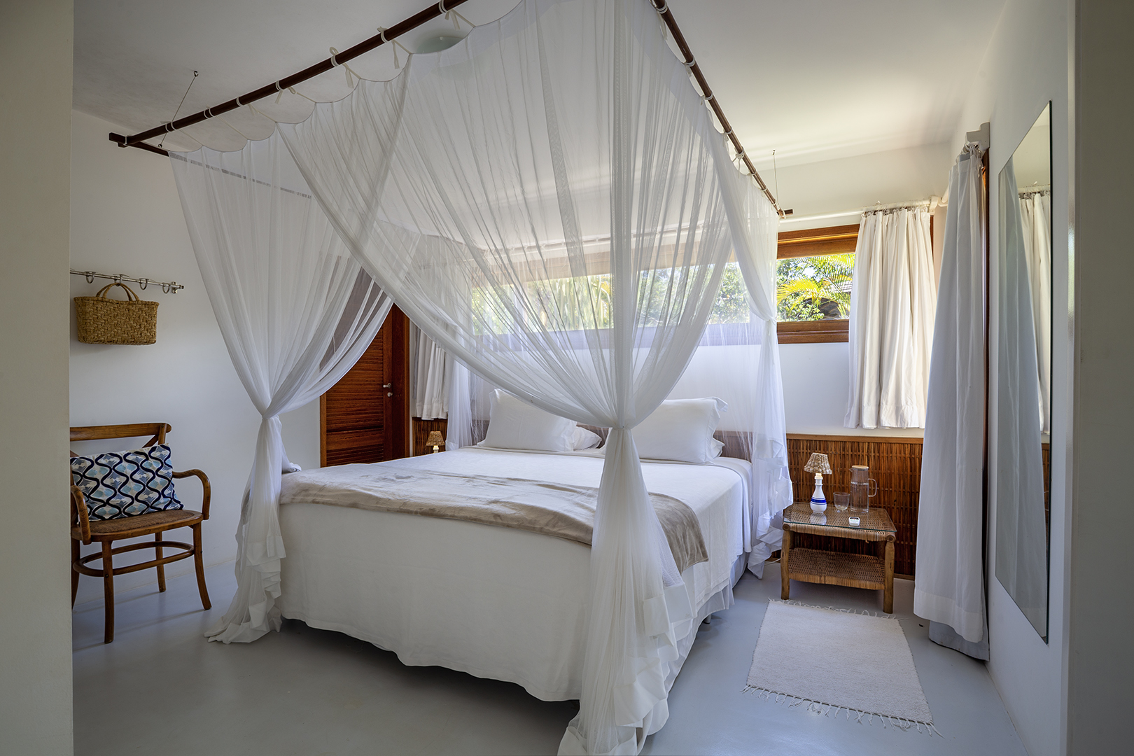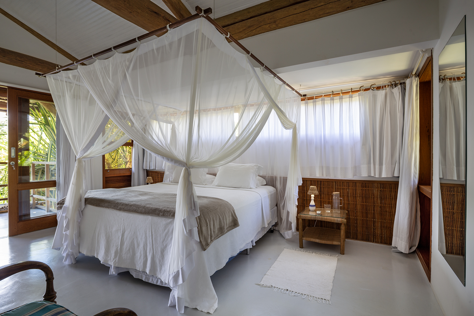 - Suíte 02 (superior): 1 cama king size, ar-condicionado, closet, mosquiteiro.