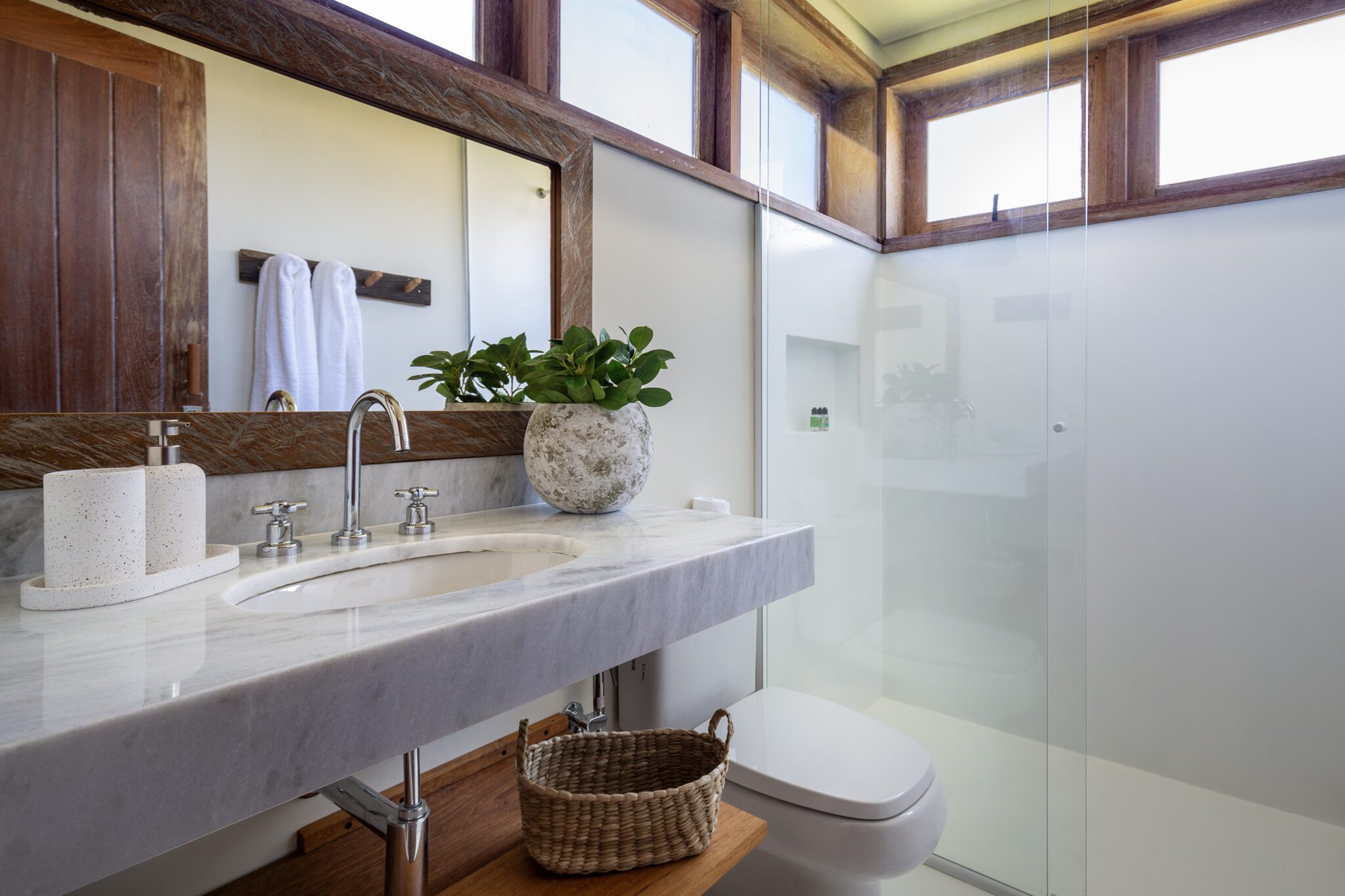 - Suíte 03 (Térreo): 2 camas de solteiro (configuráveis em cama king), secador de cabelo