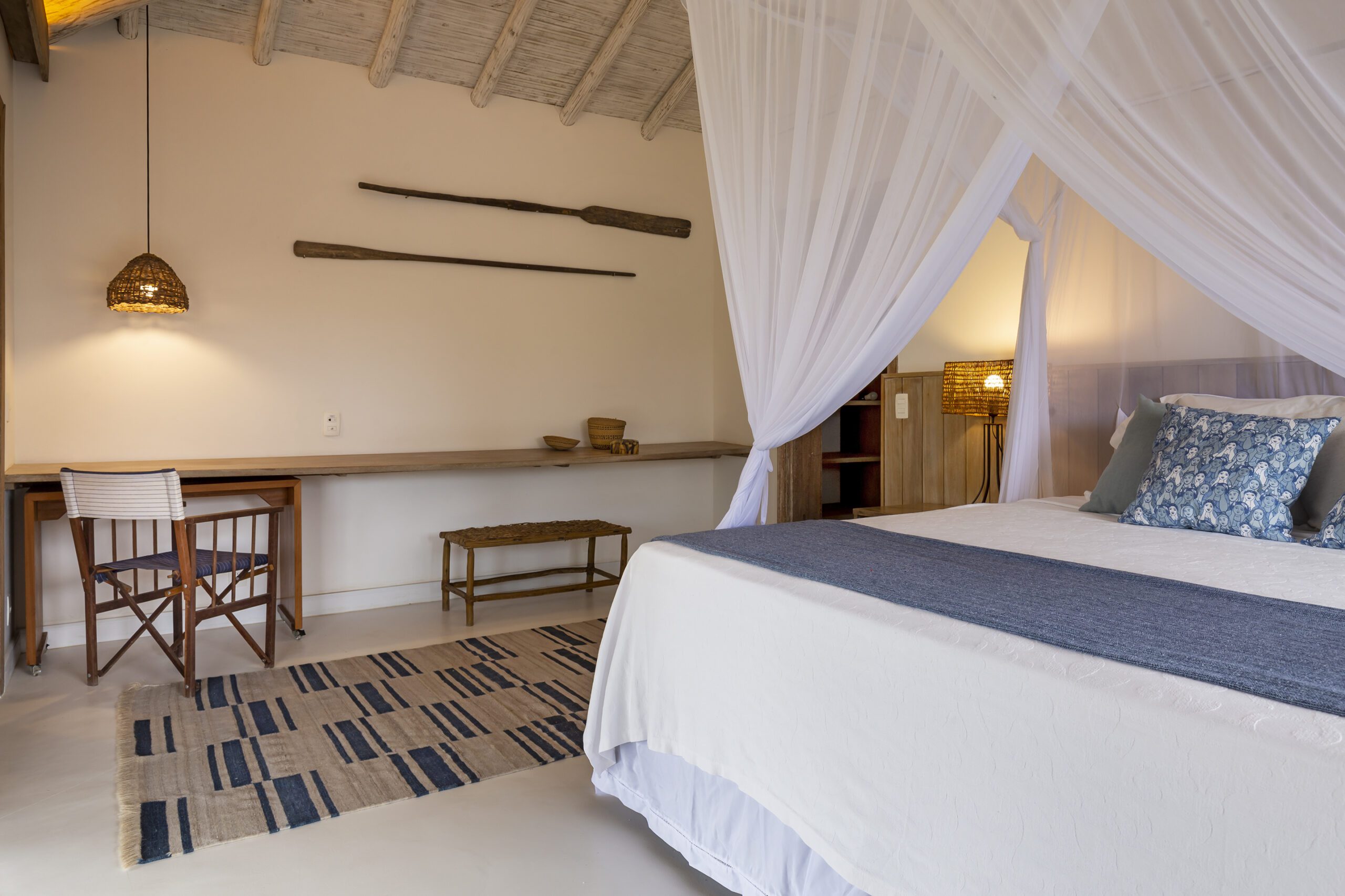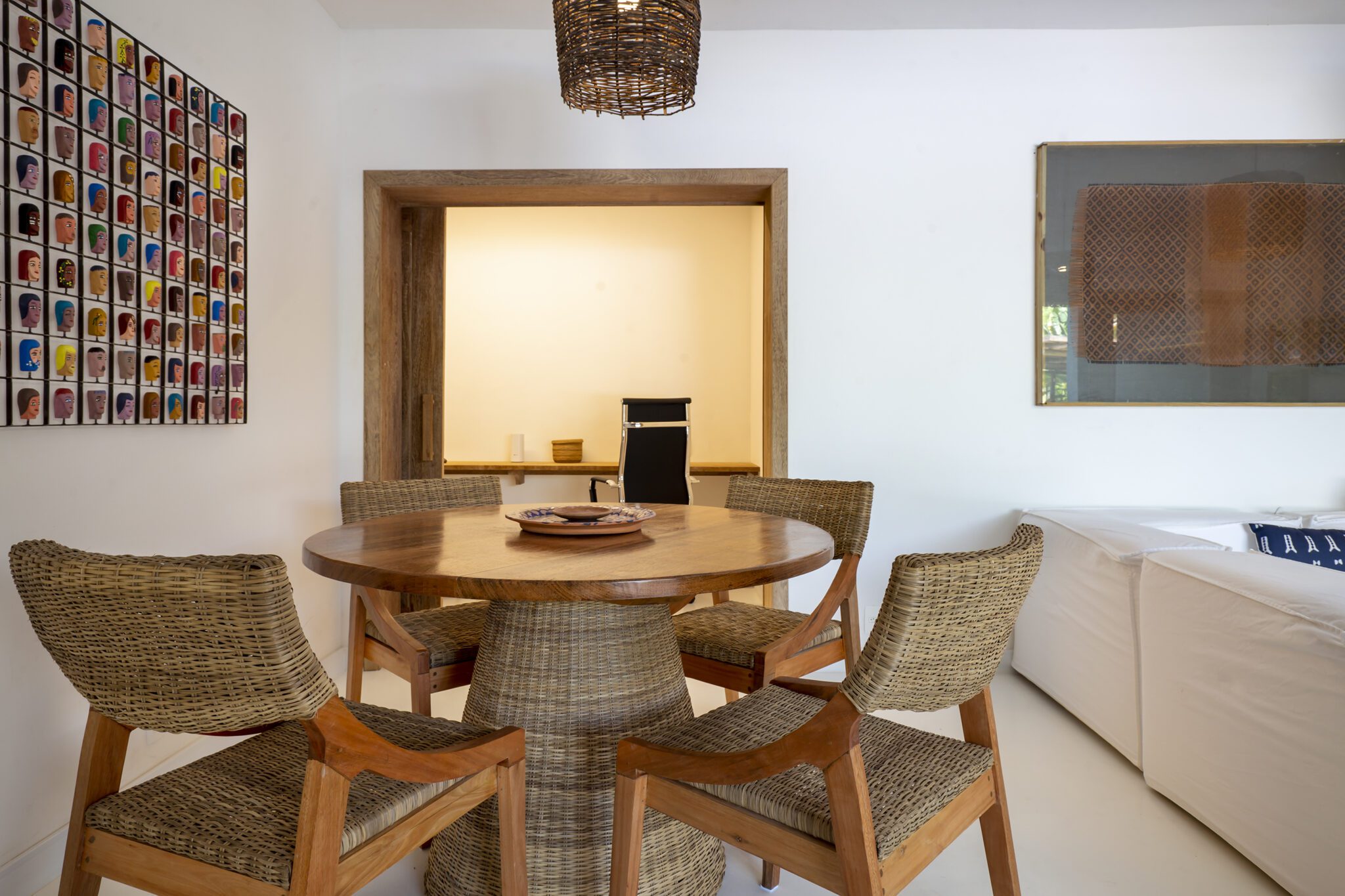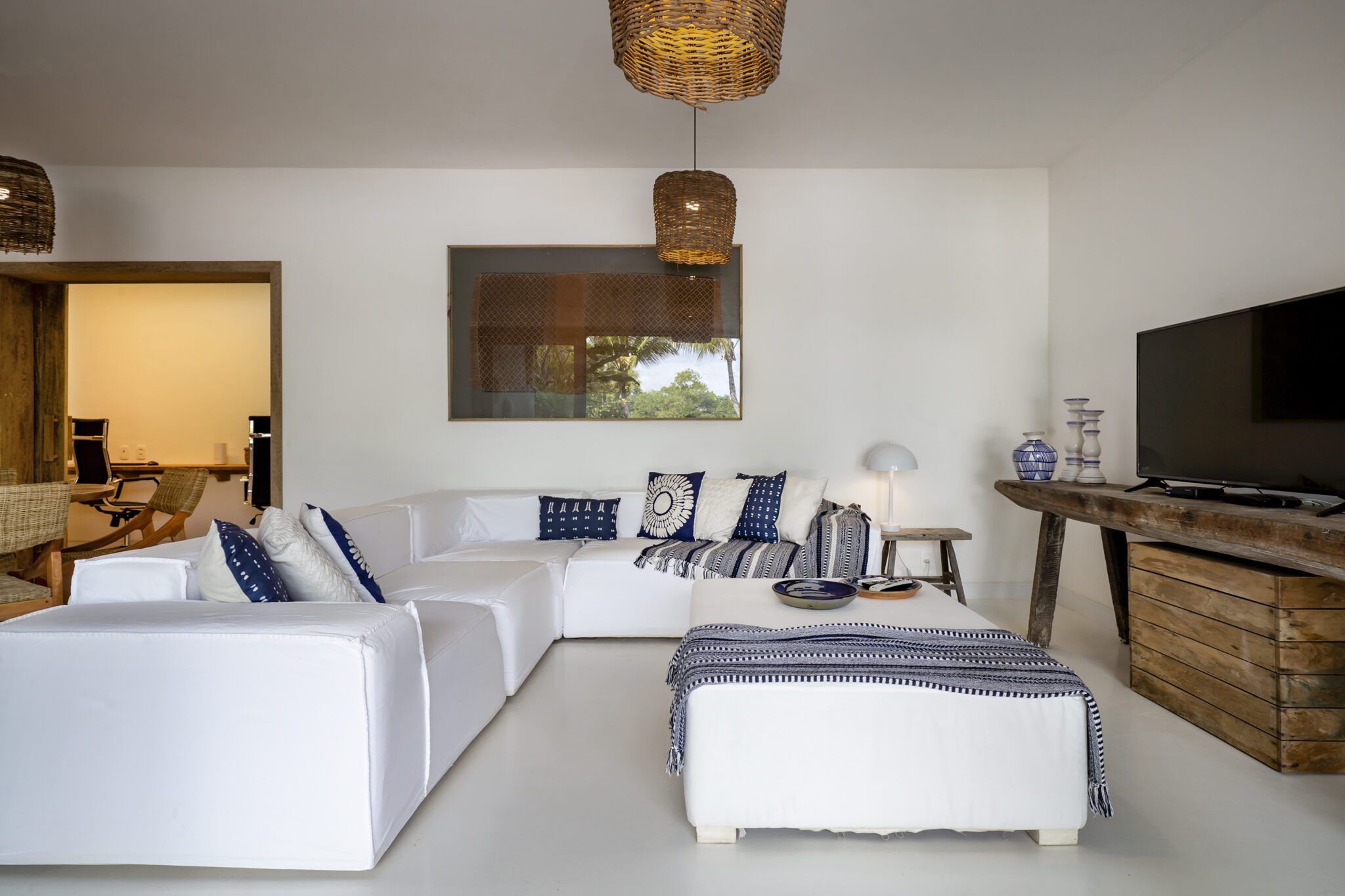 A Casa 76 é a tradução perfeita do estilo rústico-chique que encanta Trancoso. Com ambientes integrados, decoração elegante em tons de azul que remetem ao mar e um paisagismo acolhedor, ela oferece a harmonia ideal entre sofisticação e natureza. Seus 681m² de área construída abrigam com conforto até 12 hóspedes em 6 suítes amplas, iluminadas e ventiladas. Um escritório privativo permite manter a produtividade mesmo em meio ao paraíso.
